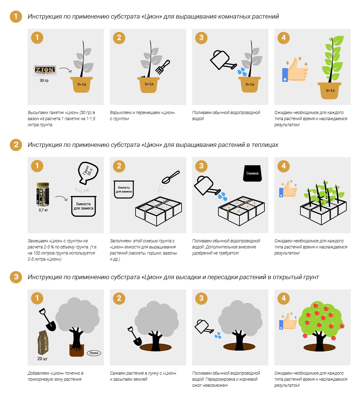 Инструкция по применению субстрата ZION (Цион) для высадки и пересадки растений в открытый грунт