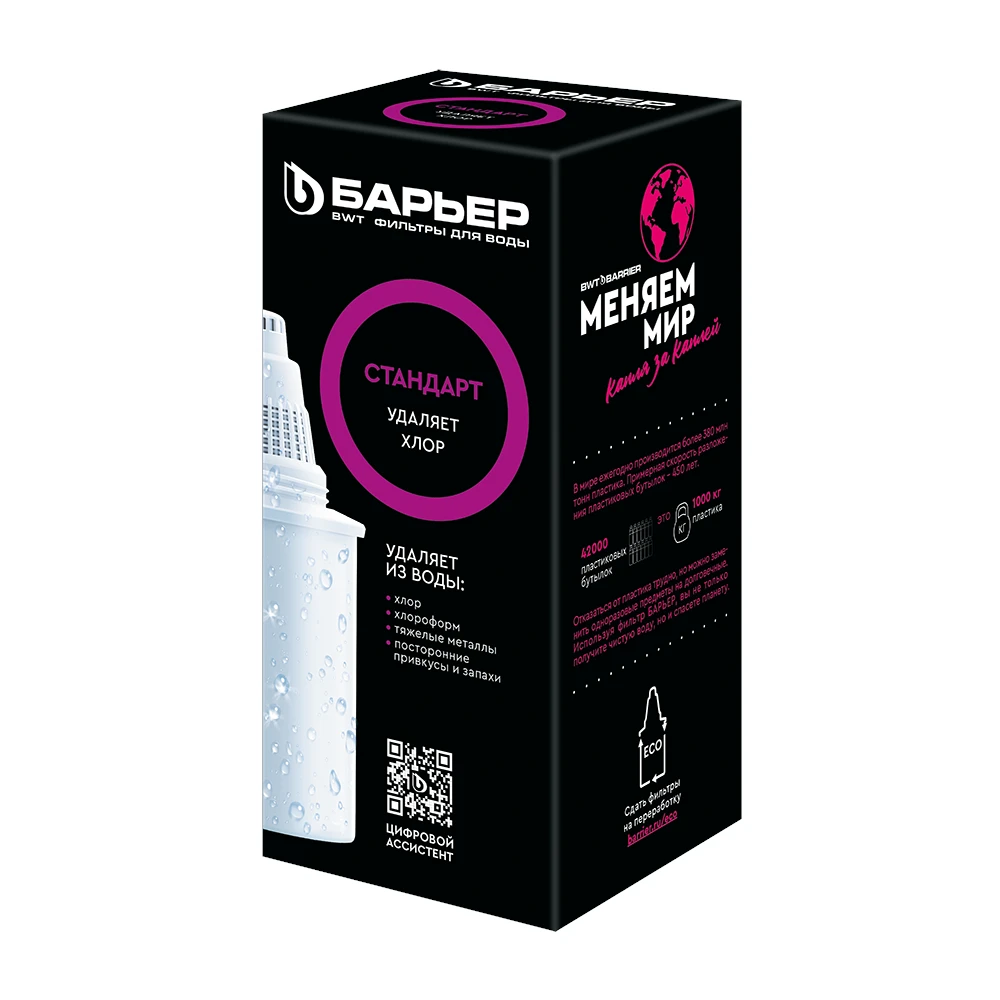 ЭкологичностьОдна кассета Барьер способна заменить несколько сотен пластиковых бутылок.