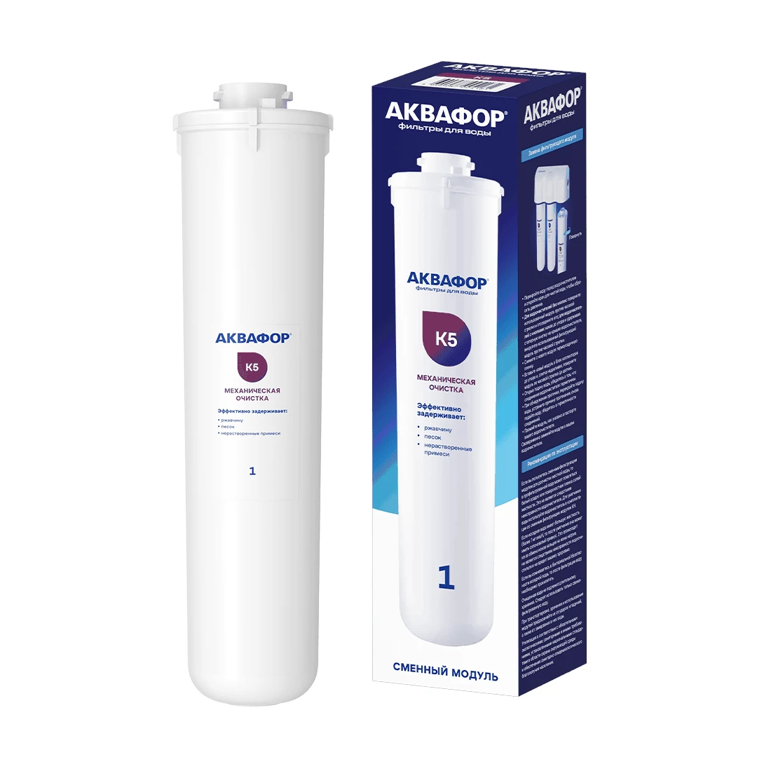 Модуль К5 эффективно отфильтровывает песок, ржавчину и другие нерастворенные частицы размером до 5 микрон.