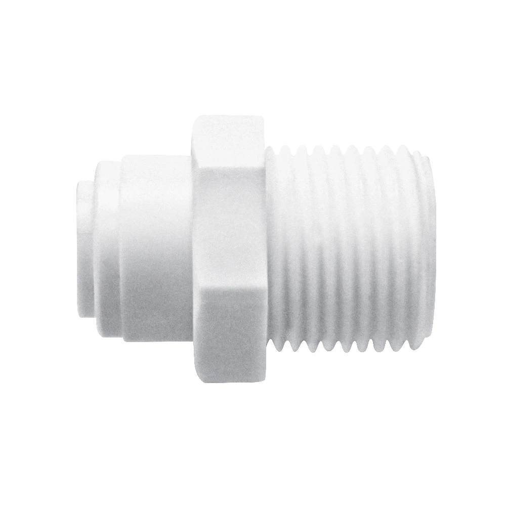 Пластиковый фитинг для соединения прямых участков трубопровода разного диаметра в системе очистки воды. Пластик химически инертен, не выделяет вредных веществ. Используется для подключения проточных фильтров БАРЬЕР к комбинированным смесителям с резьбовым соединением 1/2".