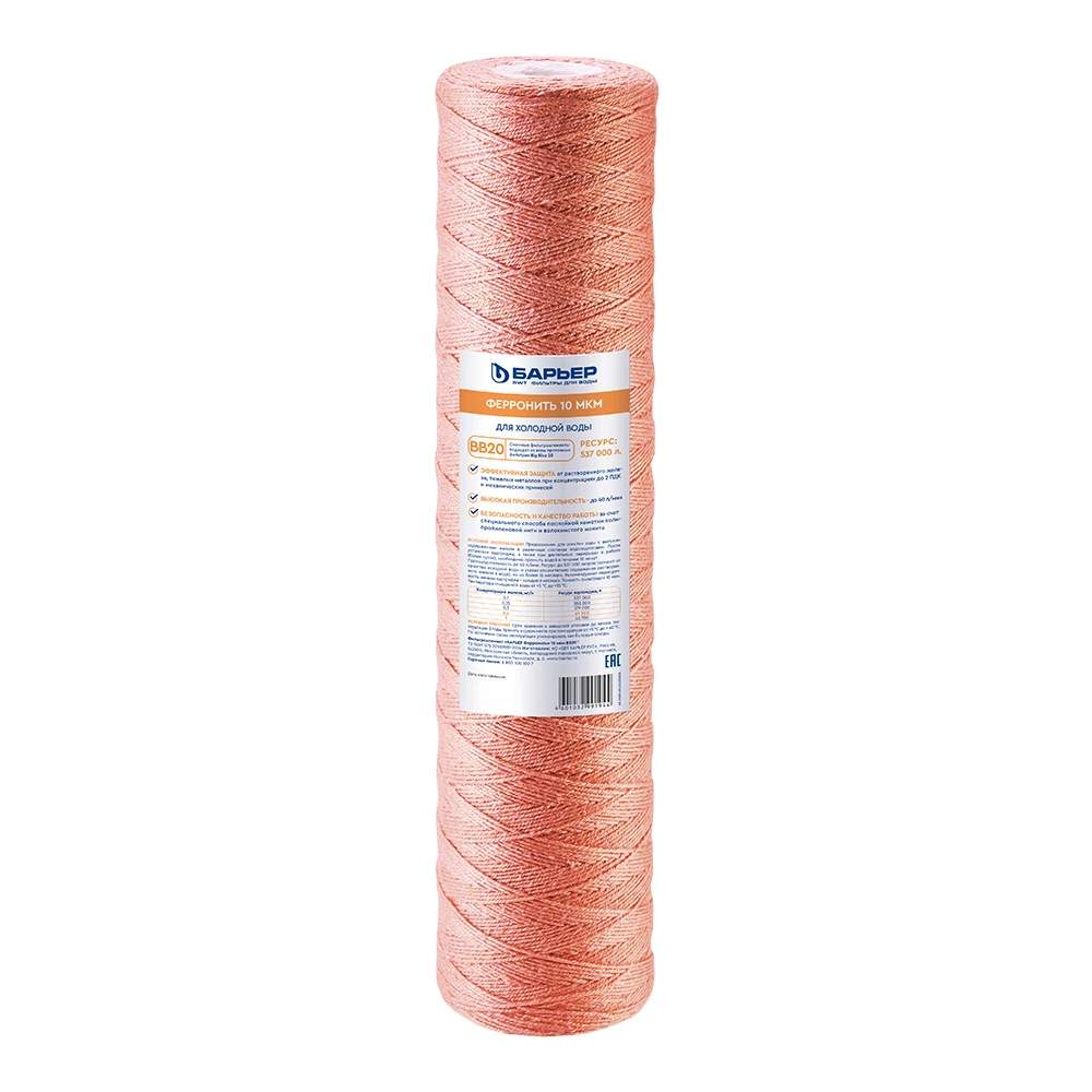Картридж БАРЬЕР «Ферронить» предназначен для очистки воды с высоким содержанием железа в различных системах водоподготовки. Эффективно удаляет механические частицы от 10 мкм, примеси растворенного и коллоидного железа, а также справляется с тяжелыми металлами.
