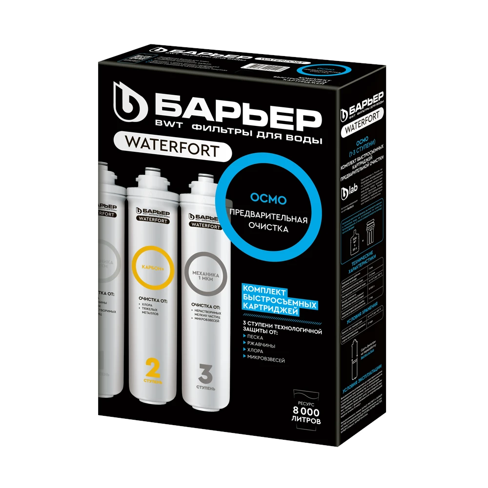 Описание комплекта картриджей 1-3 ступени для фильтра Барьер WaterFort Osmo