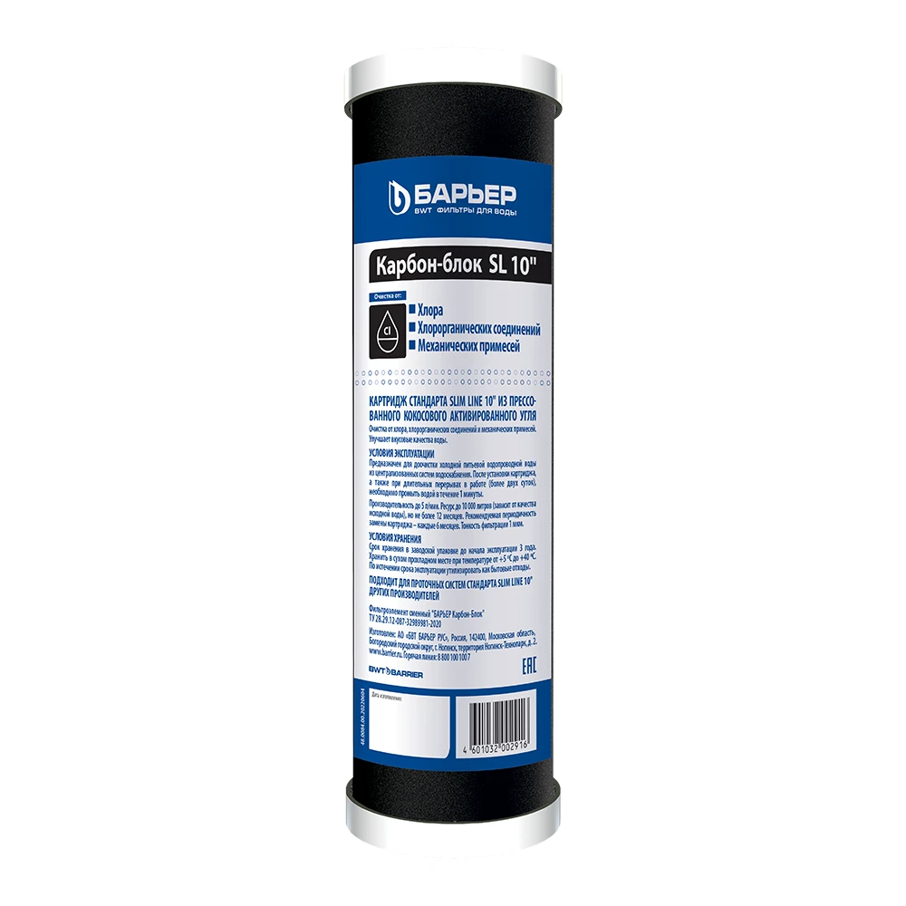 Сменный картридж БАРЬЕР Карбон-блок Slim Line 10 подходит для магистрального фильтра других производителей при условии фактического соответствия универсальному стандарту SL10. А также совместим с фильтрами БАРЬЕР семейства ПРОФИ.